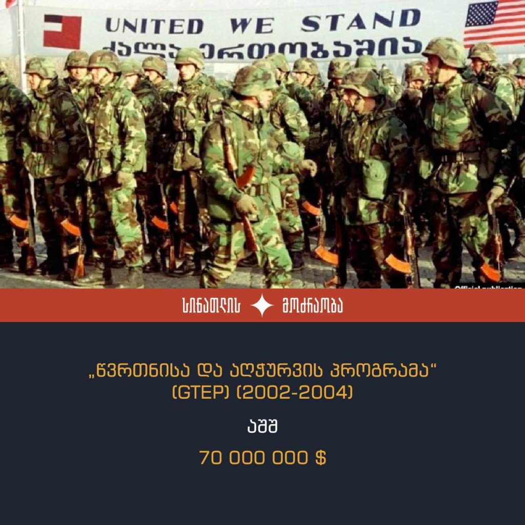 დასავლეთის მიერ დაფინანსებული ქართული ჯარის სამხედრო წვრთნები და პროგრამები.